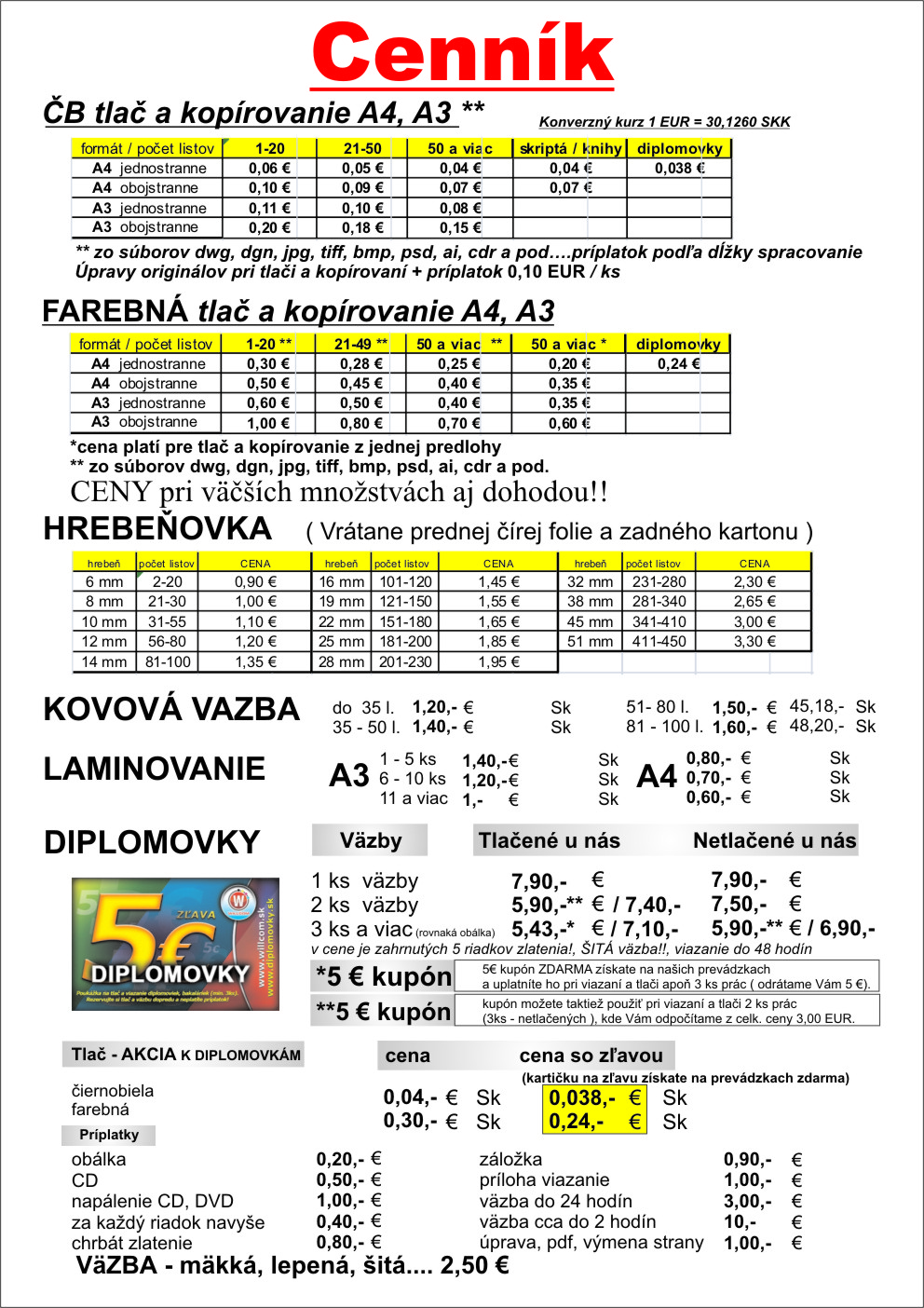 Vytlačíme pre Vás Vaše podklady v čiernobielej aj farebnej verzii za bezkonkurenčné ceny. ČB A4 už od 0,03 EUR a FAREBNÁ A4 bezkonkurenčne už od 0,15 EUR. | TLAČ | |